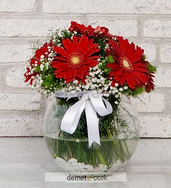 Akvaryumda Kırmızı Gerberalar